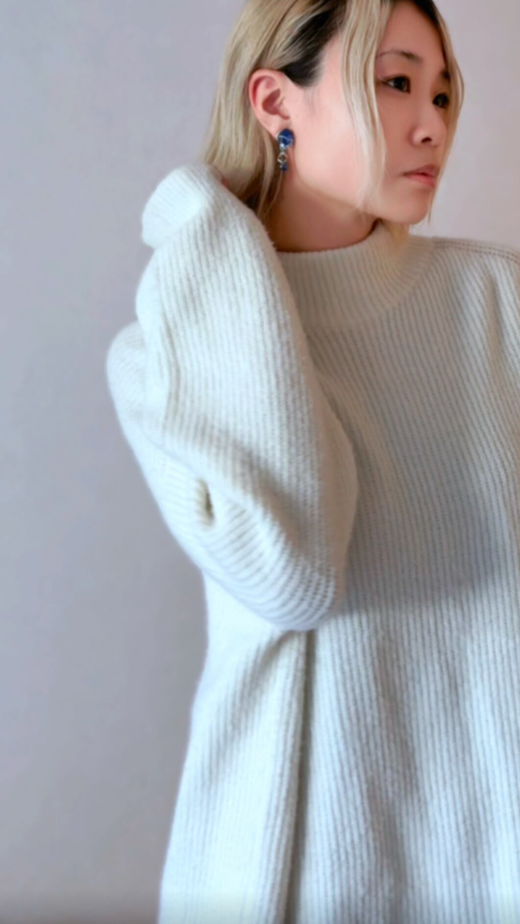 真っ白なざっくりニット。